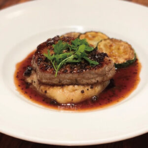 しっとりと柔らかい牛フィレ肉をトリュフのソースで贅沢に。